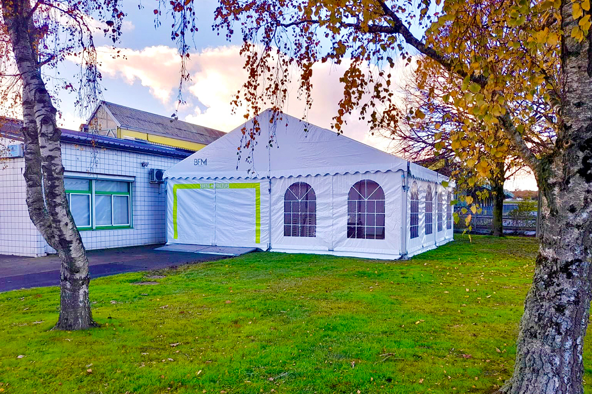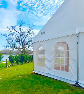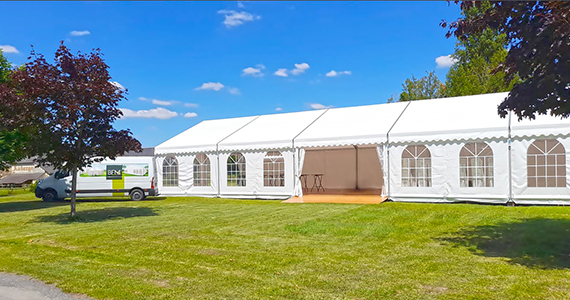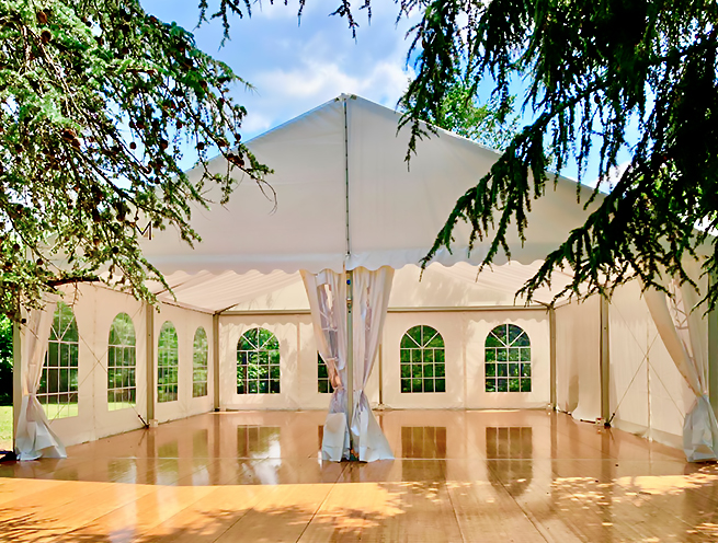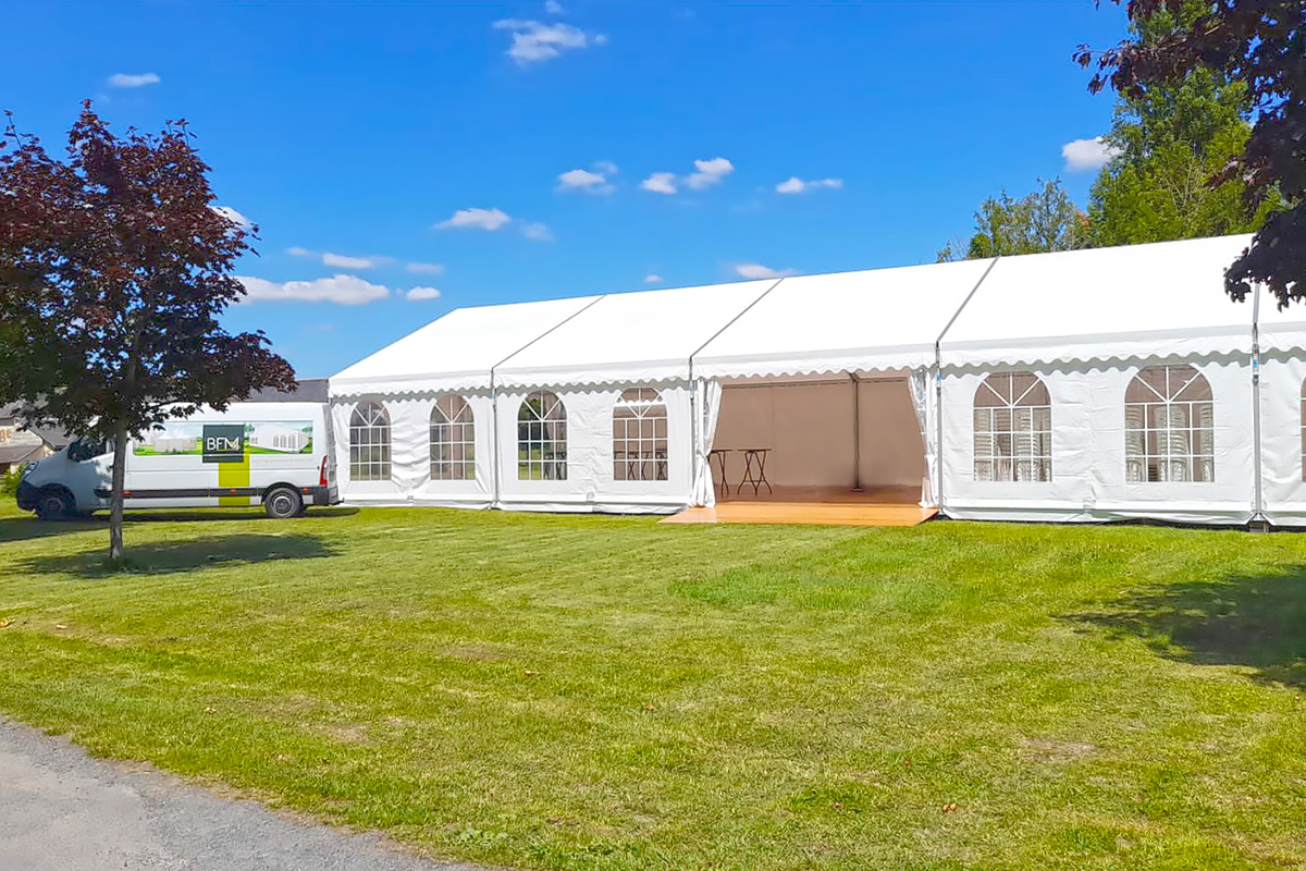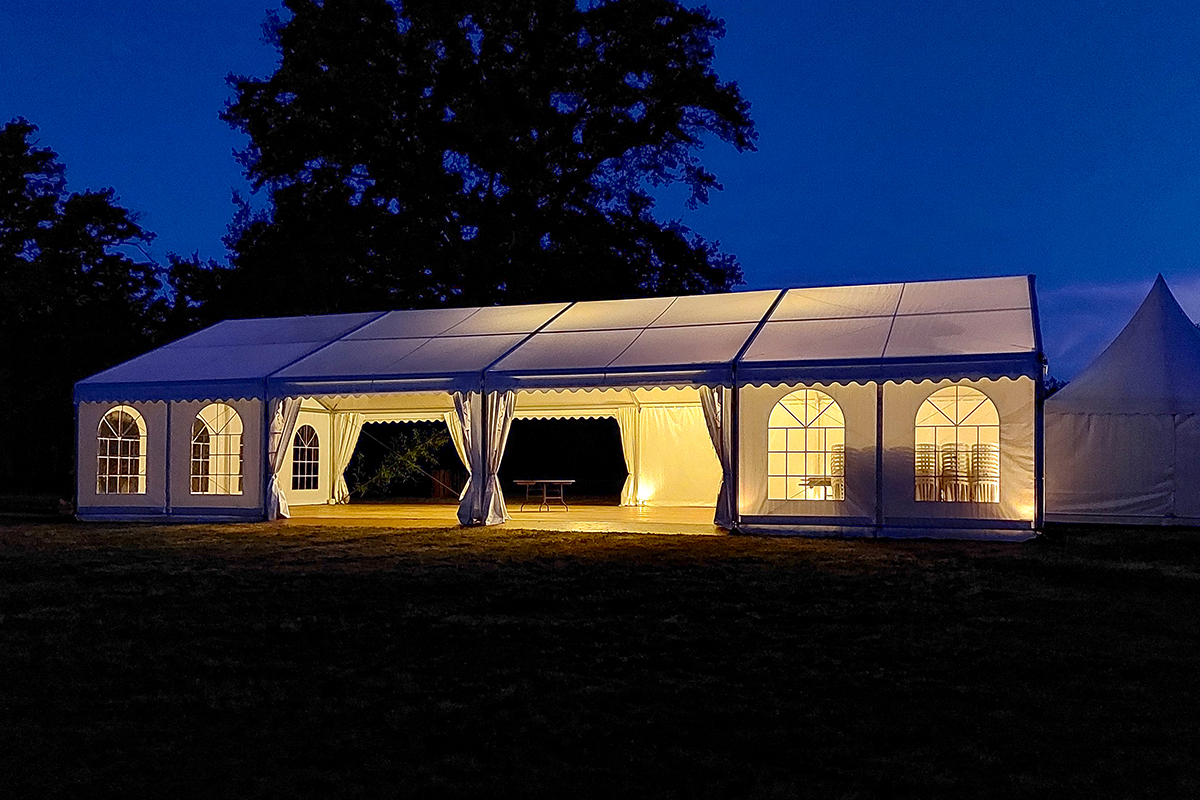 La petite tente de réception qui a tout d’une grande avec ses fenêtres Versailles, idéal pour les mariages mais aussi pour les manifestations événementielles (réceptions, expositions, soirées...).