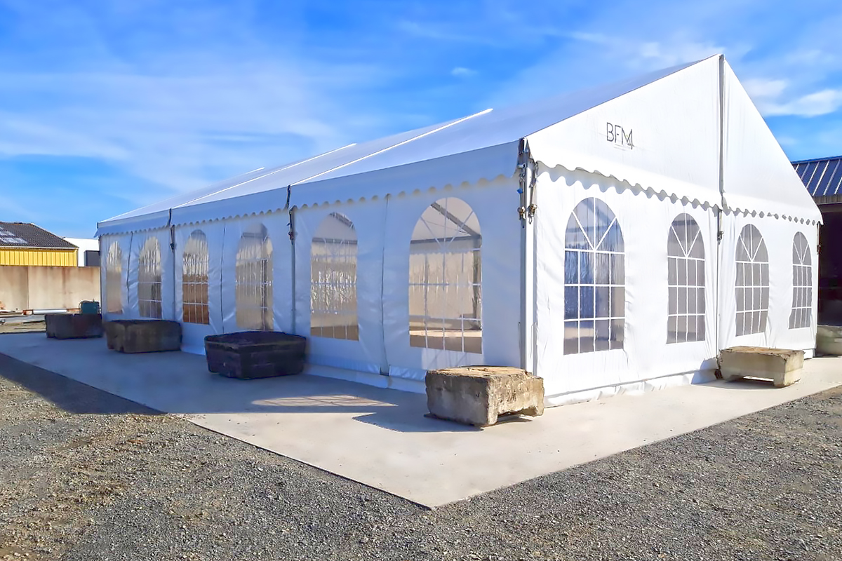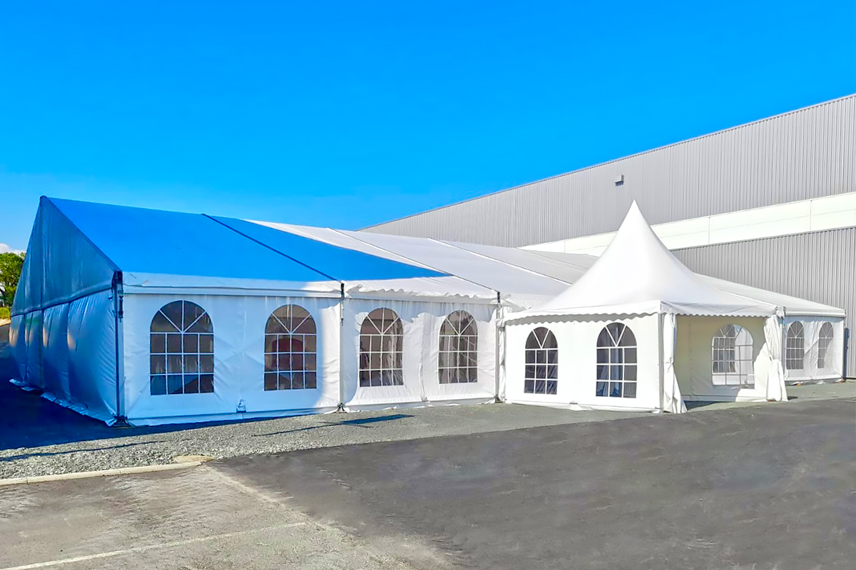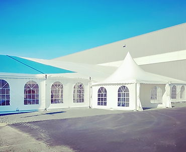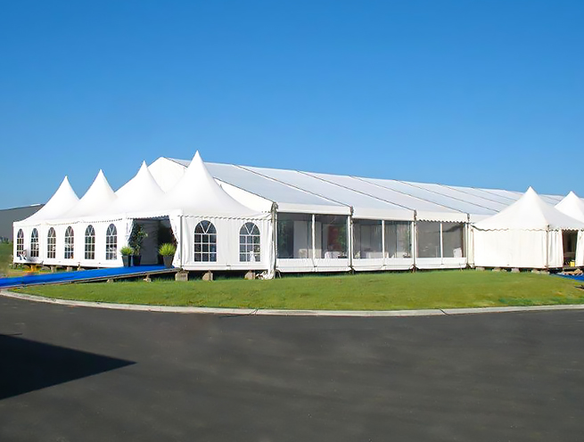 - ■ Chapiteau XXL :Les différentes structures peuvent être assemblées entre elles afin de créer de très grands espaces d'accueil : chapiteau XXL.