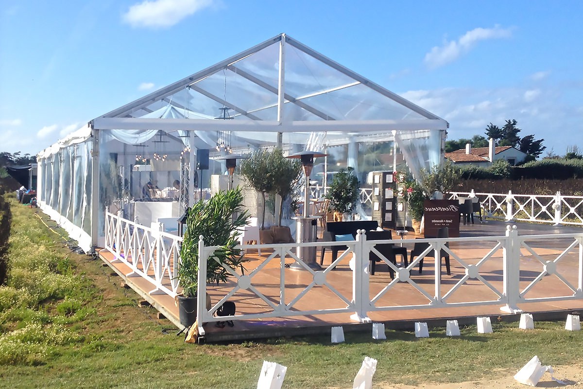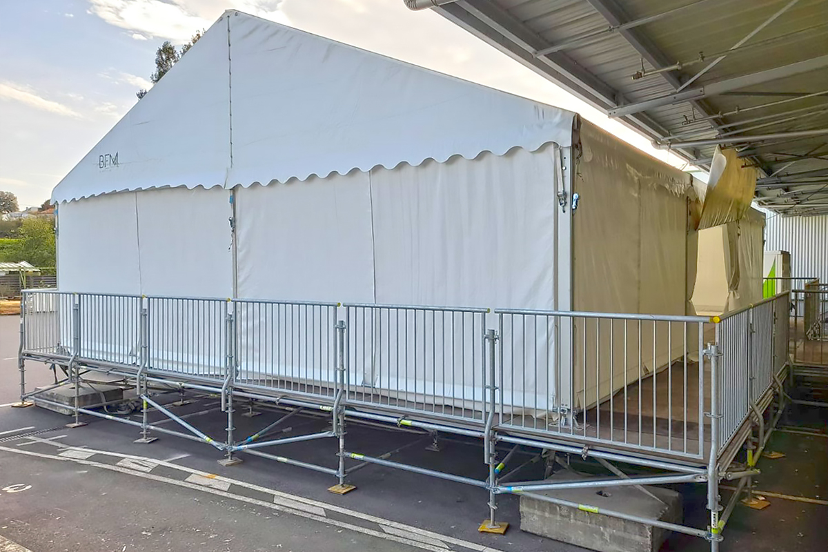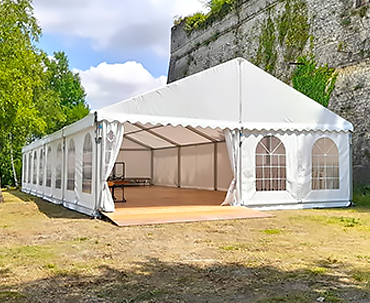 - ■ Solutions techniques : BFM location peux vous proposer des installations techniques en complément de la structure choisie : terrasse bois, podium d'élévation, scène, rampe d'accès, lestage.